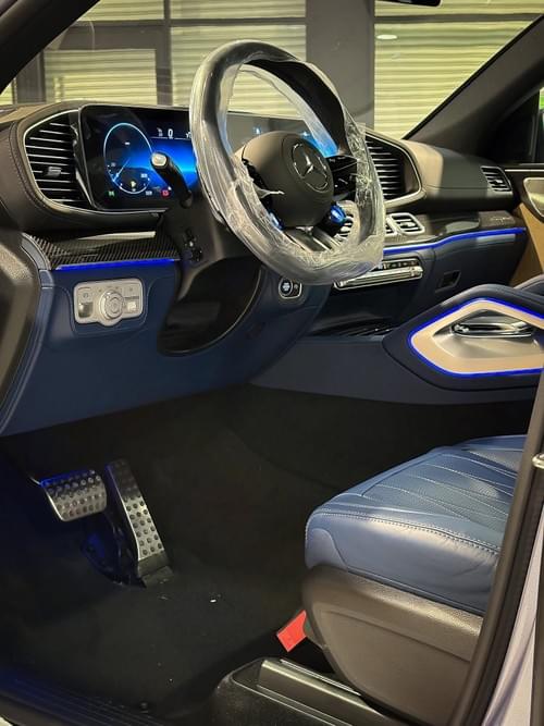 تظهر بوضوح باللون الأزرق أسفل التابلوه والأبواب، وتضيف عمقاً فاخراً للمقصورة.