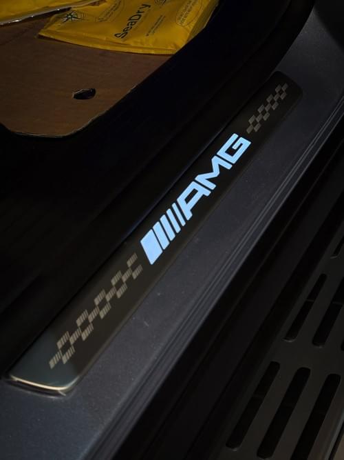صف خلفي واسع بنفس الجلد الأزرق وخياطة AMG الفاخرة.